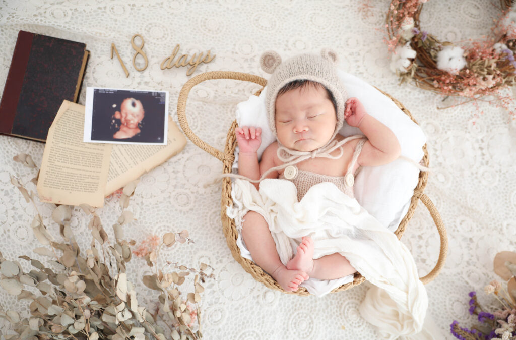 予定日で生後10日前後頃に日程を決めさせていただき、ご出産が大幅に予定日と変わる場合は再度調整させていただきます